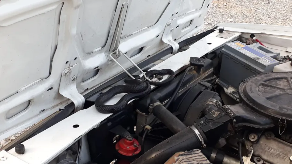 Konacık Mahallesi'nde vatandaşlar, Muğla Büyükşehir Belediyesi'nde görevli Ulutan Sarban'a, otomobilinin motor kısmına park halindeyken siyah bir yılanın girdiğini söyledi.