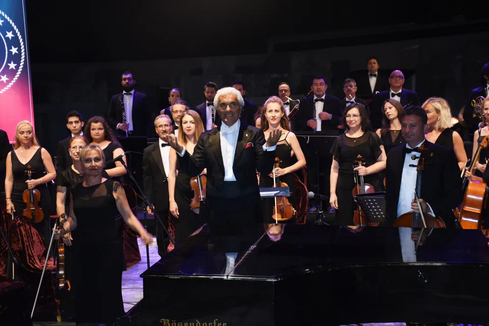 Piyanist İdil Biret, İzmir Devlet Senfoni Orkestrası eşliğinde Bodrum'da konser verdi.