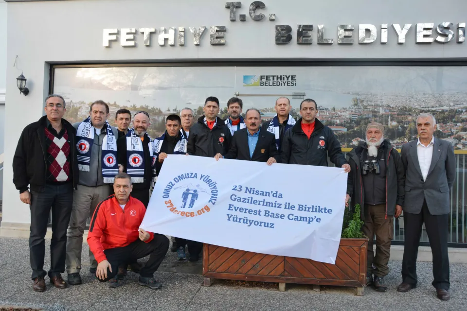 Omuz Omuza Yürüyoruz Projesi kapsamında kamp için antrenman kampı için Fethiye’de bulunan gaziler Fethiye Belediye Başkanı Behçet Saatci ile bir araya geldi. Buluşmaya; 1996 yılında Kuzey Irak’ın Hakurk bölgesinde bölücü terör örgütlerine yapılan operasyonda el yapımı patlayıcının infilak etmesiyle gazi olan Önder Gültekin, 1998 yılında Şırnak’ın Gabar dağı kırsalında bölücü terör örgüte yapılan operasyon sırasında vurularak üç iç organını kaybeden Gazi Koray Gürbüz, 2005 yılında Hakkari Çukurca’da bölücü hainler tarafından yaralanan Gazi Koray Gürbüz, 1995 yılında Kuzey Irak’ta operasyon sırasında vurularak yaralanan Gazi Ömer Duran, Emekli SAT Komandosu Deniz Kurmay Albay Ali Türkşen, Emekli Yarbay Kemalettin Yakar ve beraberlerinde gazilere olan farkındalığa dikkat çekmek isteyen omuz omuza projesi ekibi katıldı.