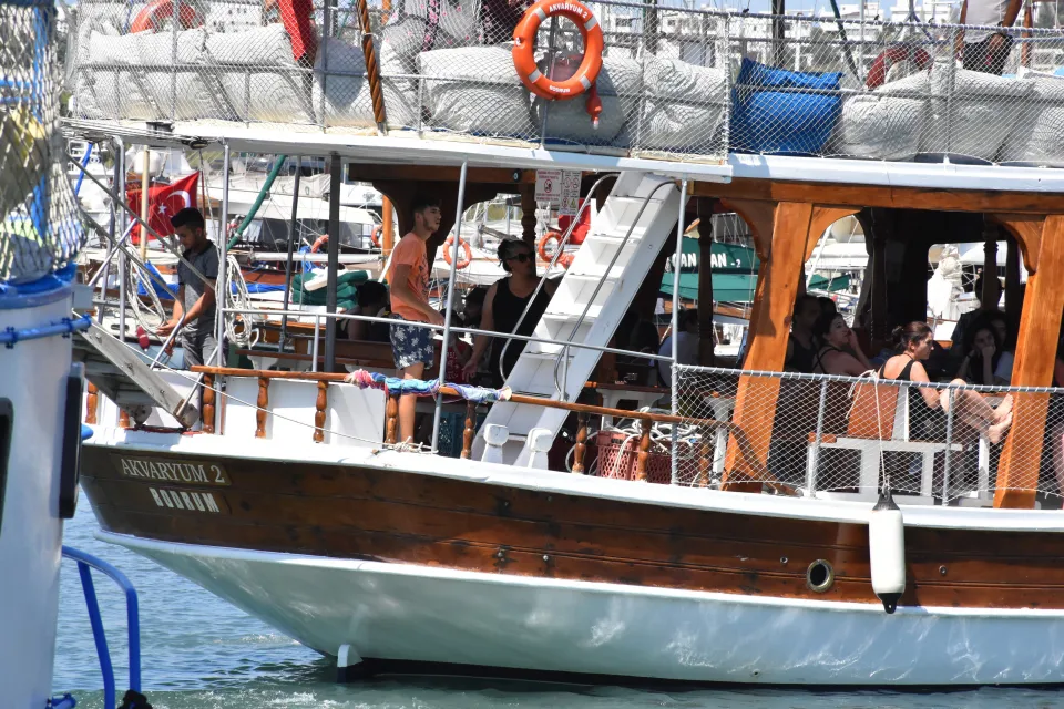 Bulunduğu yerden yaklaşık 20 metre geri kayan minibüs, limanda bağlı bulunan ve içerisinde yolcuların bulunduğu günlük gezi teknesine çarparak askıda kaldı.