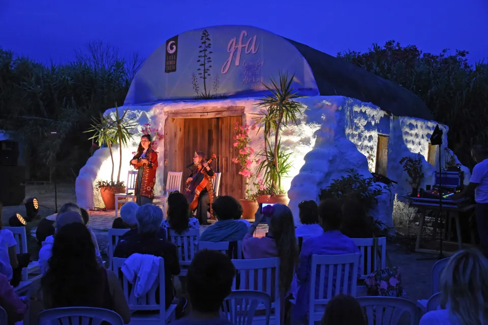 Bodrum'da, 12 Temmuz-6 Eylül tarihlerinde "suda", "kumda" ve "taşta" olmak üzere 3 ayrı konseptte gerçekleştirilecek festival kapsamında, Flavia ve Laia Escarteen kardeşler, Gümüşlük sahilindeki Toprak Ev'de sahne aldı.