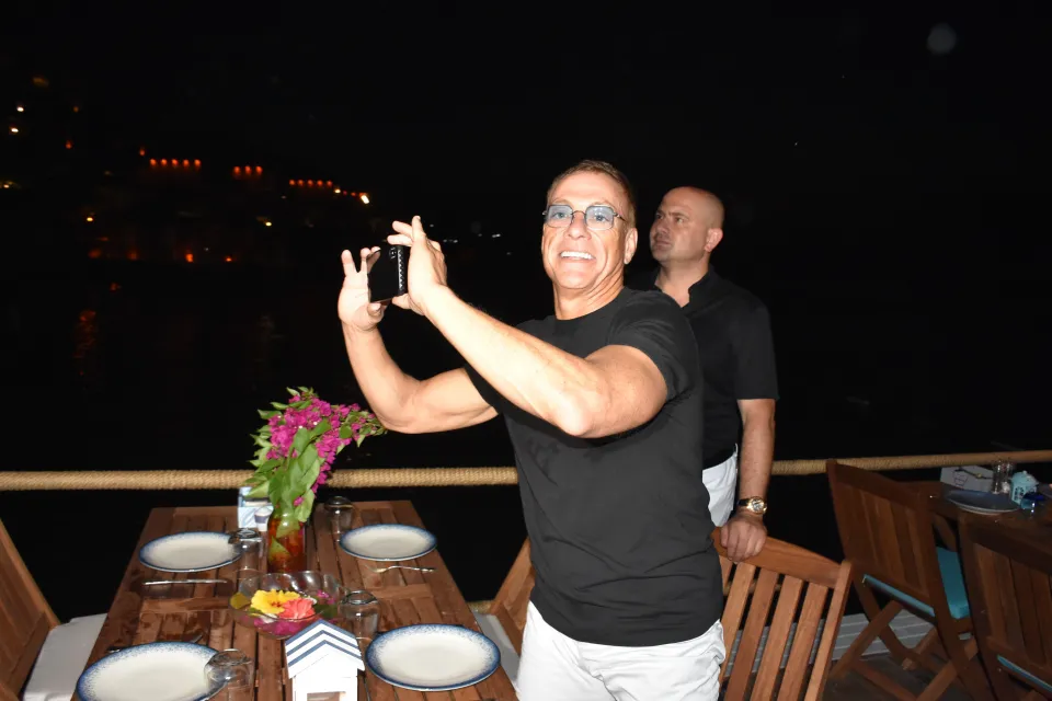 Geç saatlere kadar mekanda eğlenen Damme, otel yöneticileriyle de sohbet etti.