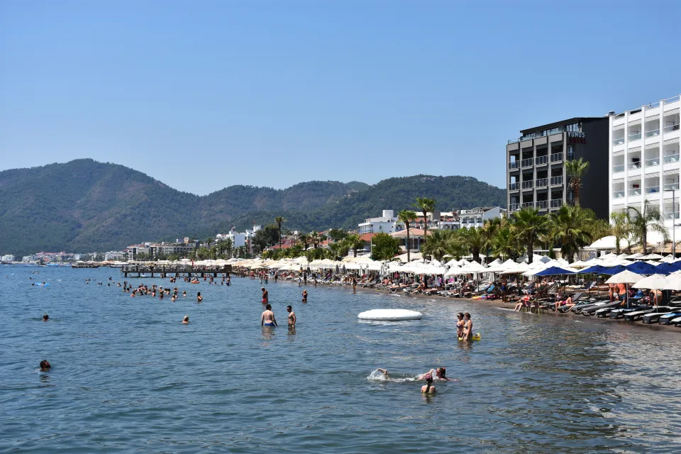 Turistler, Marmaris Belediyesi Halk Plajı, Uzunyalı, Turunç ve İçmeler sahillerini doldurdu.