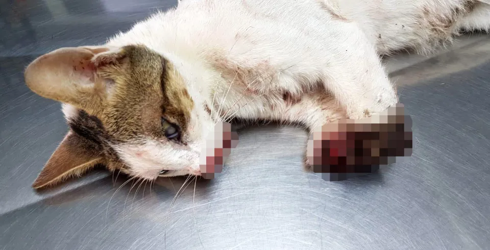 Kedinin bacaklarının aynı noktadan muntazam şekilde kesildiğini anlatan Düzgün, yapılanı vahşet olarak nitelendirdi.