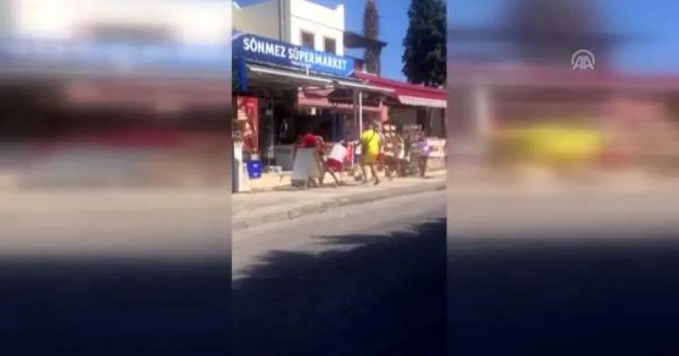 Bodrum ilçesinde, bir grup tatilcinin sokak ortasında kavga ettiği anlar cep telefonu kamerasına yansıdı.