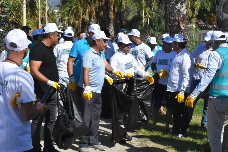 Bodrum Kaymakamı Bekir Yılmaz, Belediye Başkanı Ahmet Aras, Cumhuriyet Başsavcısı Şükrü Arslan, Ağır Ceza Mahkemesi Başkanı Serhat Işık, Denetimli Serbestlik Cumhuriyet Savcısı Hasan Boran Bozdoğan, İlçe Emniyet Müdürü Cüneyt Yörükoğlu, İlçe Jandarma Komutanı Jandarma Yarbay Ömer Faruk Karaşahin'in de aralarında olduğu Bodrum protokolünün tamamı, ellerine eldiven giyerek, Gümbet Belediye Kafe önünden sahil boyunca yürüyerek çöp topladı.
