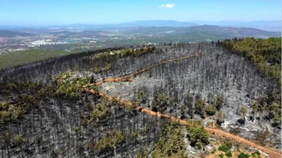 Bodrum ilçesinde iki gün süren çalışmaların ardından söndürülen orman yangınının neden olduğu hasar, havadan çekilen görüntülerle daha net ortaya çıktı.
