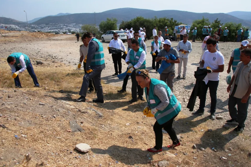Bodrum Kaymakamı Bekir Yılmaz, Garnizon Komutanı Albay İzzet Adagideli, Belediye Başkan Yardımcısı Ummahan Yurt, Cumhuriyet Başsavcısı Şükrü Arslan, Denetimli Serbestlik Cumhuriyet Savcısı Hasan Boran Bozdoğan, İlçe Milli eğitim Müdürü Aslan Korkmaz, İlçe Emniyet Müdür Cüneyt Yörükoğlu, Bodrum Denetimli Serbestlik Müdürü Ruhşen Doğan, AK Parti İlçe Başkanı Ömer Özmen, Esnaf ve Sanatkarlar Odası Başkanı Erdoğan Başeymez ve bazı daire amirleri ellerine eldiven giyerek değirmenler çevresinde yaklaşık yarım saat boyunca çöp topladılar.