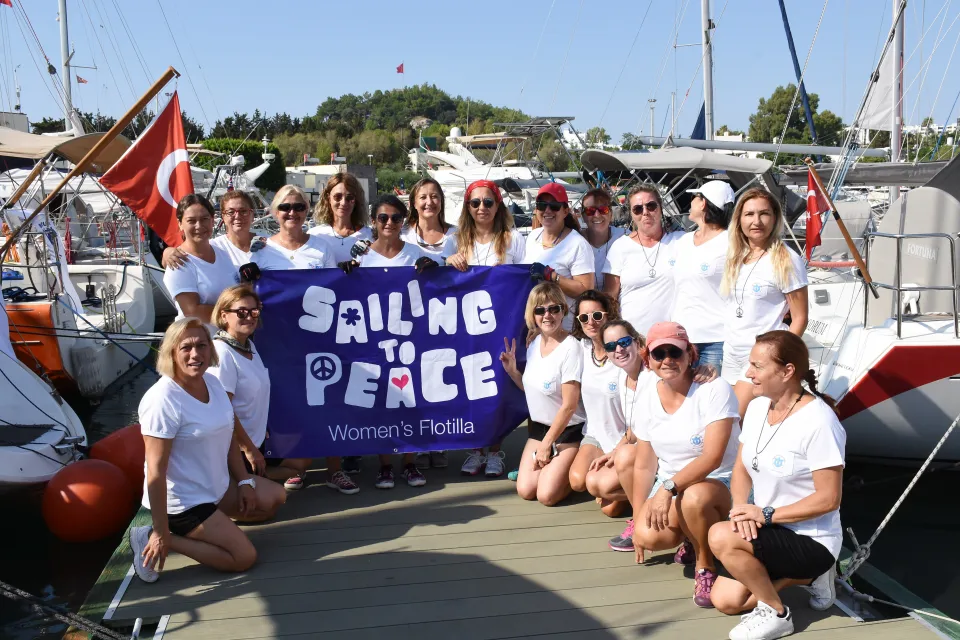 Kadınlar, 5 gün sürecek "Barışa Yelken" etkinliğinde, "Tutku mm", "Nora" ve "Nil" isimli 3 yelkenli tekneyle Kalimnos, Leros, ve Lipsi adalarını kapsayan 106 millik seyir yapacak.
