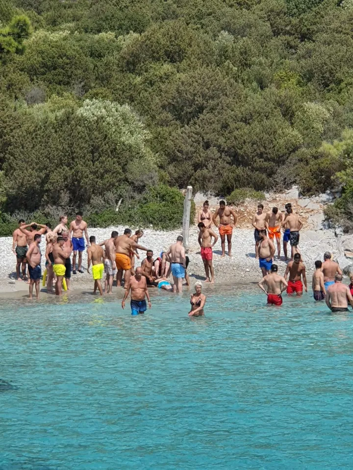 Bu arada, kıyıya çıkartılan turiste sağlık müdahalesinde bulunulması teknedeki bir vatandaş tarafından cep telefonu kamerasıyla görüntülendi.