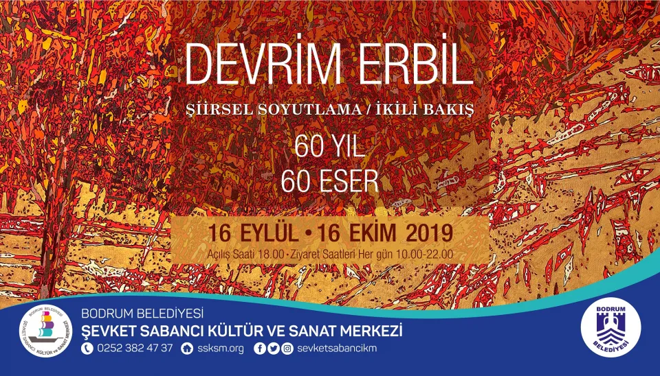 Bodrum Belediyesi Şevket Sabancı Kültür ve Sanat Merkezi, Eylül ve Ekim aylarında ünlü ressam Devrim Erbil’in eserlerine ev sahipliği yapıyor. Erbil’in Şiirsel Soyutlama/İkili Bakış “60 Yıl 60 Eser” adlı sergisi, 16 Eylül-16 Ekim 2019 tarihleri arasında Turgutreis’te sergilenecek.