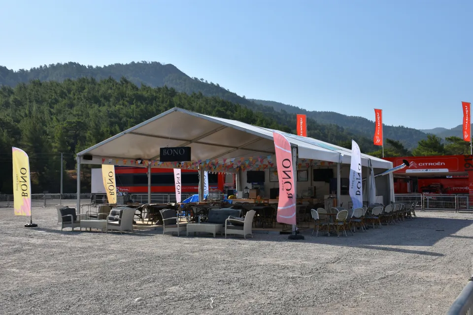 İçmeler Mahallesi Asparan mevkisindeki Türkiye Rallisi Servis Alanı'nda adeta küçük bir şehir kuruldu. Seyyar ilk yardım hastanesi, kafe, restoran, medya ve canlı yayın merkezi, garaj alanlarının bulunduğu bölgeye 130 tır malzeme ve platform taşırken yaklaşık bin kişilik ekip de burada çalışma yürütüyor.