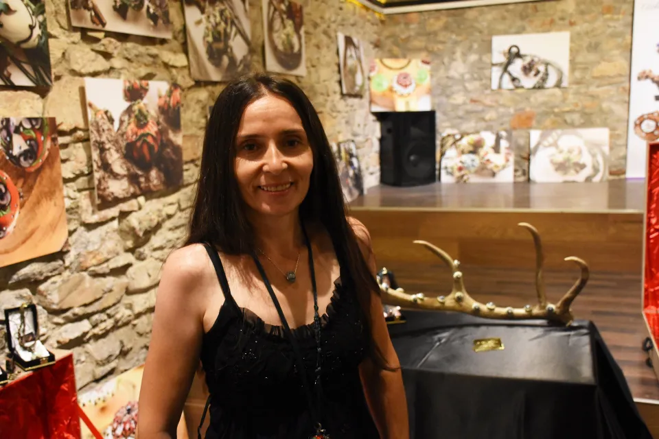 Murano cam sanatını tezhip ve hat sanatıyla birleştiren, camdan takılar ve farklı objeler üreten Bilgiç, antika niteliğindeki anahtar ve kamalar üzerine cam sanatı uygulamalarını da sergiledi.