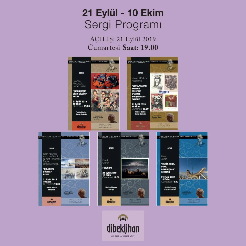 Dibeklihan’da 21 Eylül 2019 Cumartesi günü saat 19:00’da Orhan Kemal Meydanı’nda beş sergi açılışı yine aynı anda gerçekleşirken Türkiye’de ilk defa yalnızca Dibeklihan’da sergilenecek olan exlibrisler de yer alacak.