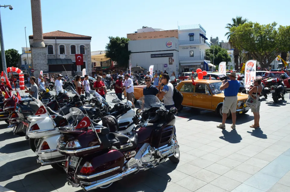 "Turkish Classic Car Murat 124" grubu ve "Milas Bab Riders" motosiklet grubu üyeleri, düzenledikleri etkinlik kapsamında Bodrum Belediye Meydanı'nda buluştu.