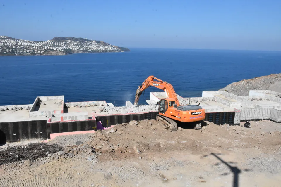 "Yapılan tespitlere baktığımızda imar barışına uymayan 31 Aralık 2018 tarihi öncesinde yapılmış ancak sonrasında yapılmış gibi gösterilen, yine arazide doğal kot kesitlere uyulmamış, ilave bodrum katların çıkarıldığı ve imar planı ve ruhsata aykırı yapıların yapıldığını gördük. Bu anlamda ilk 50 metrede hiçbir şekilde yapılaşma yapılmamasına rağmen mevcutta yapıların olduğu, ikinci 50 metrede günübirlik tesisler yapılması gerekirken günübirlik tesisler dışında tesisler olduğu, yine imar planında turizm tesisi olarak gösterilip mevcutta konut olarak yerleşmelerin olduğu tespitleri yapıldı ve ilgililerine bildirildi. 19 projede 2 bin 100 bağımsız bölümü içeren tespitlerimiz oldu. Toplamda 11'i otel 19 proje 2 bin 100 bağımsız proje için tebligatlarımızı gerçekleştirmiş olduk. Bu projenin 10'unda yükleniciler tarafından yıkım işlemleri başlatıldı. Diğer başlatılmayan 9 projeye ilişkin de ilgili birimlerin aldığı tedbirlerle yıkım işlemlerini fiilen gerçekleştiriyoruz. 19 projede 2 bin 100 bağımsız bölüme ilişkin de yıkım işlemleri süratli bir şekilde yapılacak ve en yakın zamanda imara uygun hale getirilecek. Bodrum'da ve tüm sahil kesiminde incelemelerimiz devam ediyor. Bu anlamda Muğla'daki 9 ilçemizde 30 gündür aralıksız şekilde denetimlerimizi sürdürüyoruz."