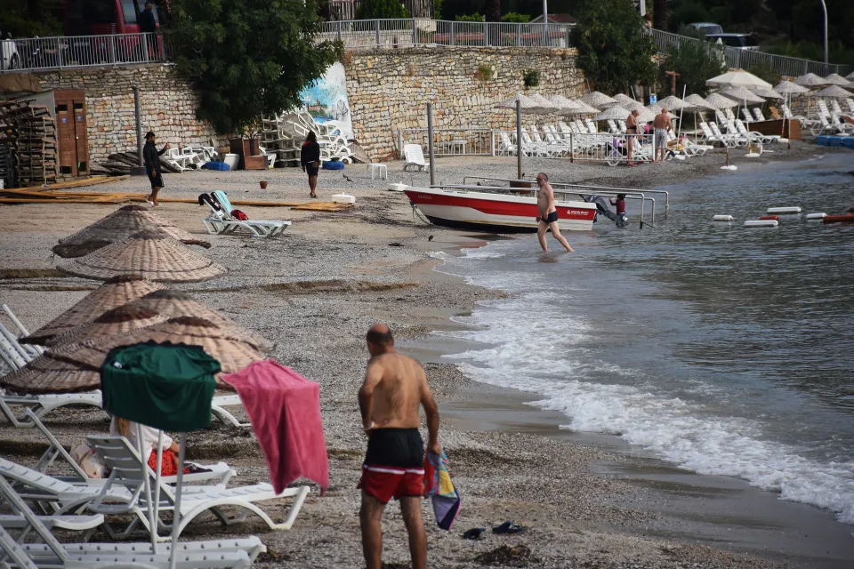 Bodrum ilçesinde, günlük yaşamı olumsuz etkileyen sağanağın etkisini kaybetmesinin ardından bazı ilçe sakinleri denize girip güneşlendi ve balık avladı.