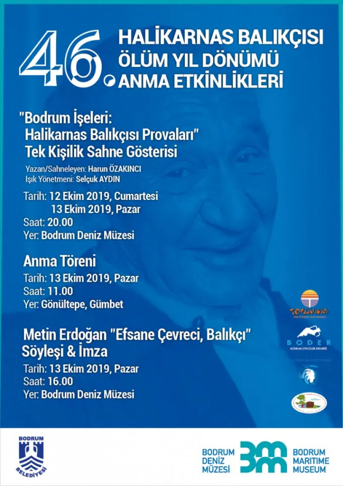 Halikarnas Balıkçısı (Cevat Şakir Kabaağaçlı) aramızdan ayrılışının 46.yılında çok sevdiği Bodrum’da anılacak. Bodrum Belediyesi tarafından Bodrum Deniz Müzesi’nde ve Gönültepe’de düzenlenecek anma etkinlikleri 12-13 Ekim 2019 tarihlerinde gerçekleşecek. Etkinlikler, 12 Ekim Cumartesi günü Bodrum Deniz Müzesi’ndeki “Bodrum İşeleri: Halikarnas Balıkçısı Provaları” adlı sahne gösterisi ile başlayacak. Ücretsiz olarak gerçekleştirilecek olan gösteri, Deniz Müzesi’nin fiziki koşulları nedeniyle sınırlı sayıda kişiye açık olacak. Rezervasyonlar Deniz Müzesi’nden yaptırılabilecek.