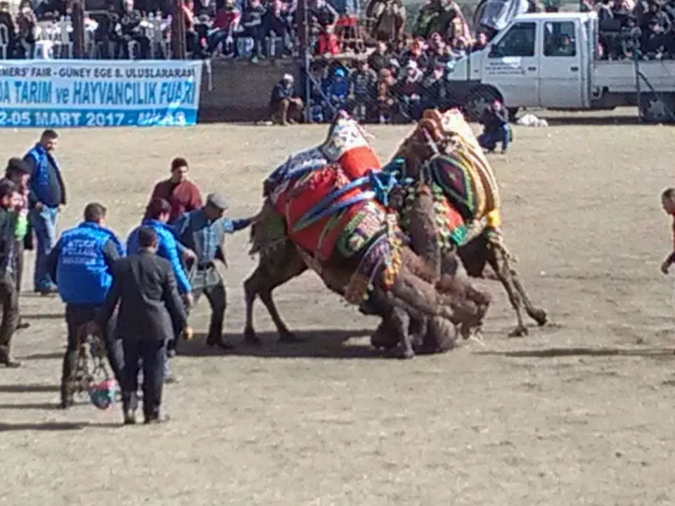 Güreşe Aydın'ın Atça ilçesinden getirilen 'Baybora1' ile Bodrum'dan katılan 'Kanka' adlı develer, Arena'da kozlarını paylaştı. Kıyasıya rekabet içinde mücadele eden develerden 'Kanka' galip geldi.