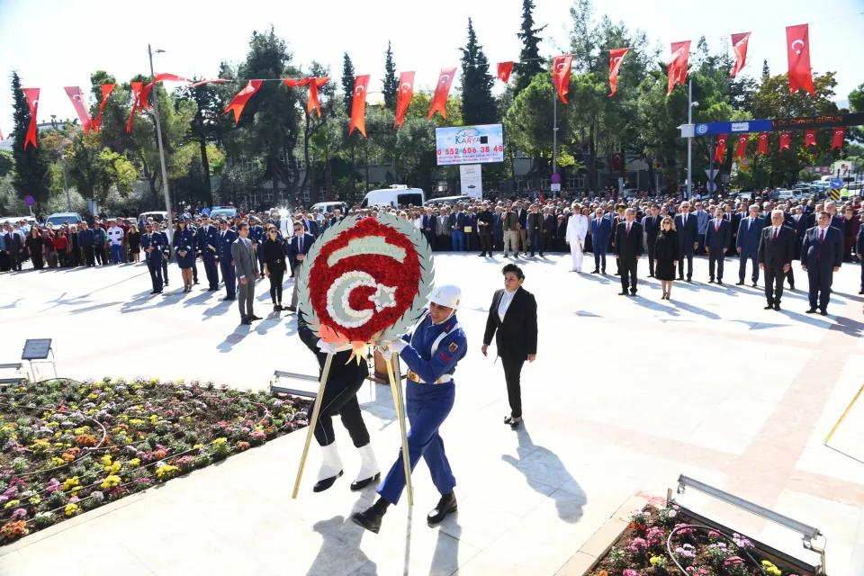 Muğla’da 29 Ekim Cumhuriyet Bayramı’nın 96. Yıldönümü kutlamaları çelenklerin Atatürk Anıtına sunulmasıyla başladı.