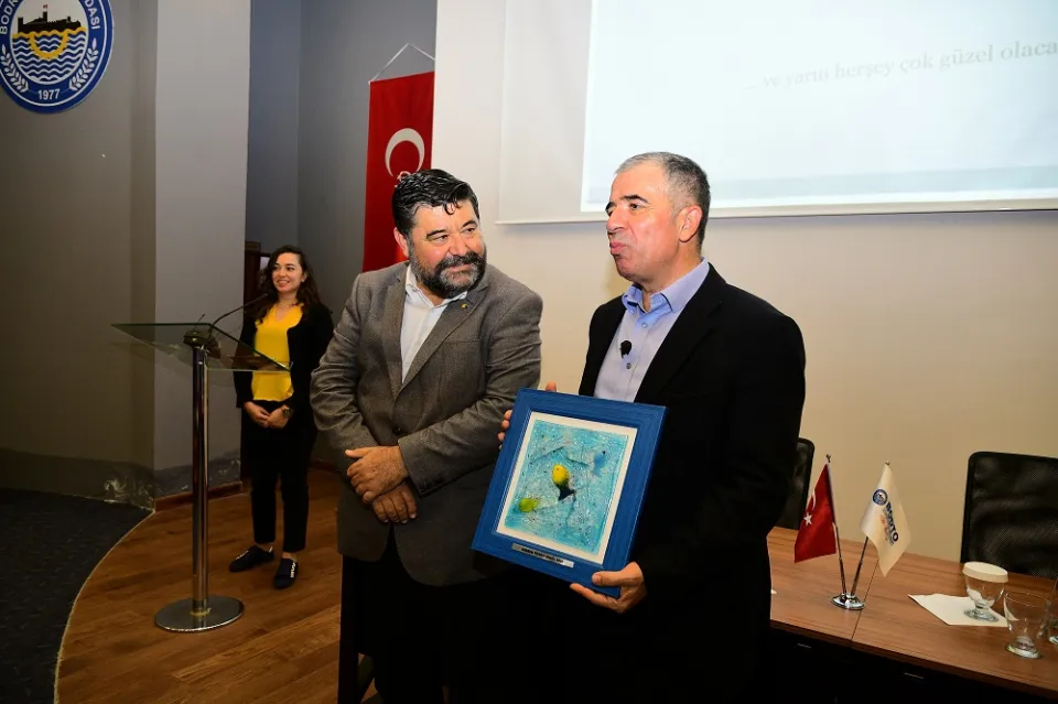Seminer Ali Ağaoğlu’nun sunumunun ardından soruların cevaplandırılmasının ardından BODTO Yönetim Kurulu Başkanı Mahmut S. Kocadon’nun teşekkür plaketi takdim etmesiyle son buldu.