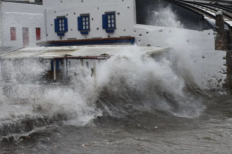 Açık denizde etkisini artıran rüzgar nedeniyle oluşan dalgalarla deniz suyu kıyıdaki iş yerlerinin balkonlarına kadar yükseldi, bazı iskeleler zarar gördü.