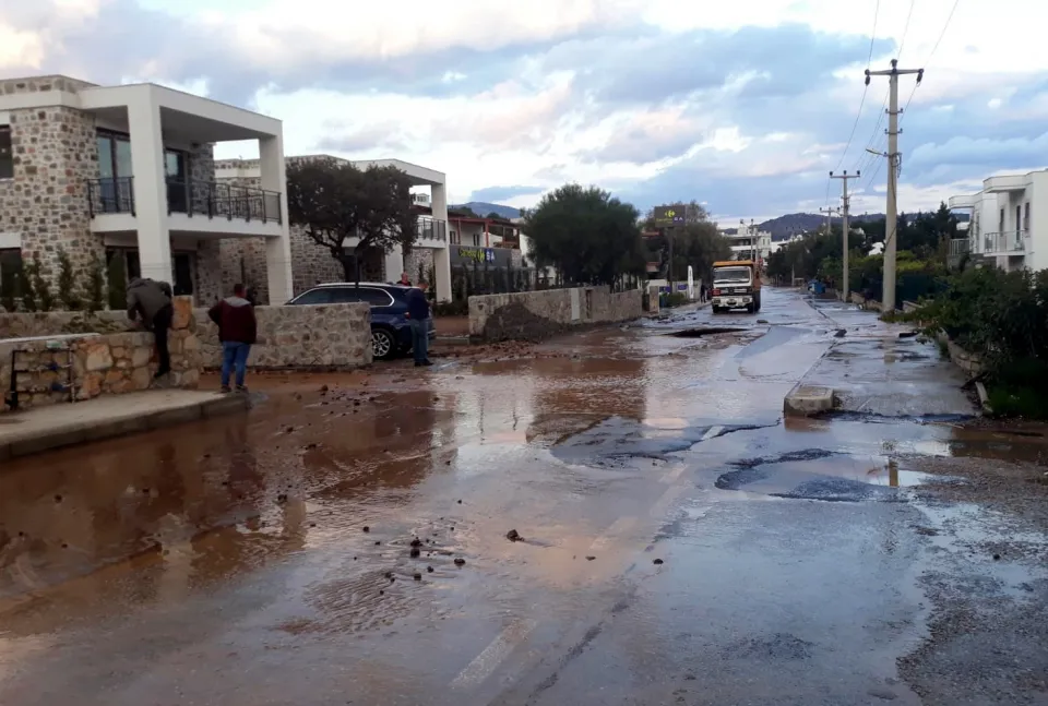 Bodrum ilçesinde, içme suyu hattındaki borunun patlaması sonucu yolda çukur meydana geldi.