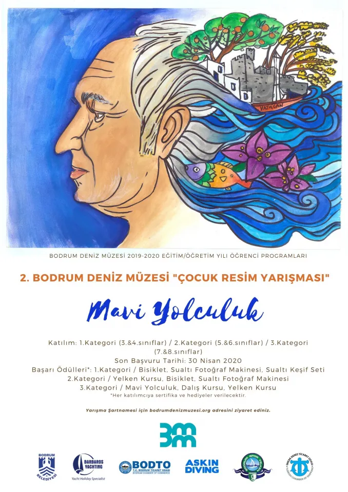 Bodrum Deniz Müzesi, 2019-2020 Eğitim-Öğretim Yılı Öğrenci Programları kapsamında “2. Bodrum Deniz Müzesi Çocuk Resim Yarışması”nı düzenleyeceğini duyurdu. Son katılım tarihi 30 Nisan 2020 olan resim yarışmasının konusu “Mavi Yolculuk”.