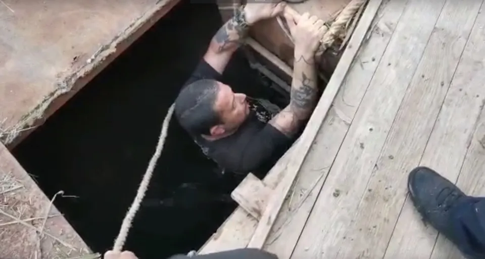 Ekipler gelene kadar "Tunda" isimli köpeğini çıkarmak için halatla kuyuya giren sahibi Nazmi Alper Akiz de burada mahsur kaldı.