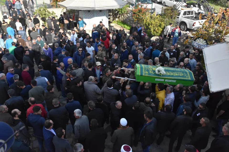 Bodrum ilçesinde, devrilen vinçten düşerek hayatını kaybeden reklamcının cenazesi defnedildi.