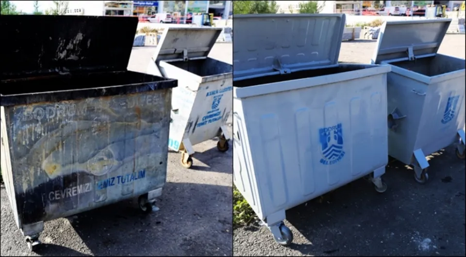 Geçtiğimiz yıllarda bulunduğu bölgeden toplanarak kademede bakım ve onarımı yapılan çöp konteynırlarına, Temizlik İşleri Müdürlüğü bünyesinde kurulan ekiple yerinde bakım ve onarım yapılıyor. Karaova bölgesinden başlayan çalışmalarda tüm cadde ve sokakları gezen ekip, çöp konteynırlarını baştan sona yeniliyor. Ekip ayrıca, Bodrum'un ana cadde ve sokaklarında bulunan çöp konteynırlarının dışına da yine kendi üretimleri olan dışı yeşil çit halısı ile kaplı demir kafesler koyuyor. Kötü görüntüyü önlemek için yapılan kafesler üretildikçe yerlerine taşınıyor. Turizm sezonu öncesine kadar Bodrum genelindeki tüm çöp konteynırlarının bakım ve onarımının yapılması planlanıyor.