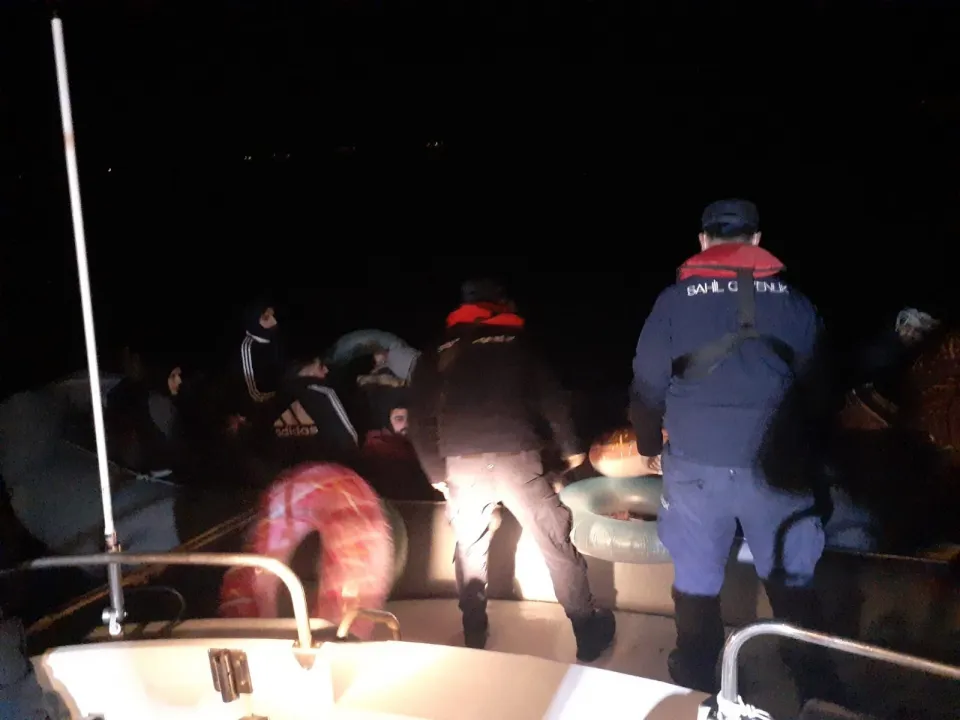 Bodrum açıklarında bir grup düzensiz göçmen bulunduğu bilgisini alan Sahil Güvenlik ekipleri, bölgede tespit ettiği lastik botu durdurdu.