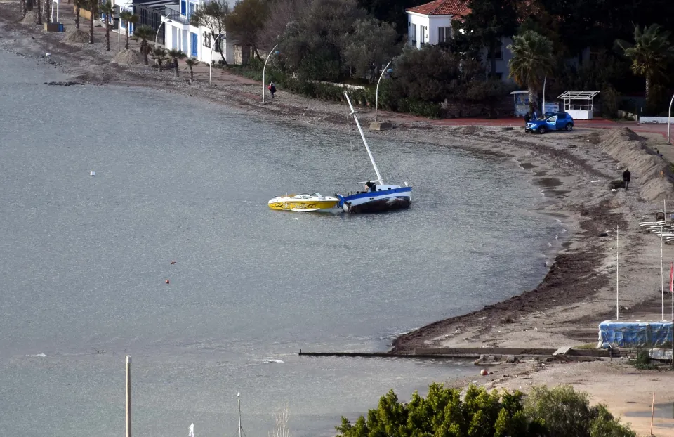 Bodrum'un yüksek bölgelerinden daha net görülebilen deniz suyu renginin değişimi, ilginç bir görüntü oluşturdu. Bitez açıklarında kuvvetli rüzgarla bağlı bulunduğu yerden kıyıya sürüklenen ve bir bölümü batan yaklaşık 15 metrelik "Okyanus 1" isimli teknenin kurtarılması için bölgede çalışma başlatıldı.