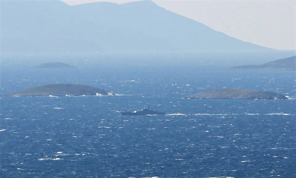3 gündür fırtına nedeniyle Türk sahil güvenlik ekipleri Kardak kayalıklarındaki devriyelerine ara verdi. Fırtınanın dinmesini bekleyen sahil güvenlik ekiplerinin yerini ise Türk savaş gemisi aldı. (İHA)