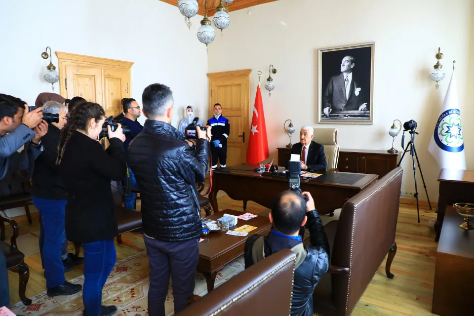 Başkan Gürün “Konser, tiyatro, sergi açılışları iptal. Bilgilendirme afişlerini mümkün olduğu kadar her yere yapıştırmak suretiyle astık. Hapşurma, öksürme gibi durumlarda nelere dikkat edeceğimiz resimle ve yazıyla anlatıldı. Koronavirüs bilgilendirme broşürü yaptık ve iş yerlerine bilgilendirme notları hazırladık, dağıttık. Panik yapmayalım ama basit tedbirlerin hepsini aksatmadan yapalım. Sağlık çalışanlarımızın tümüne teşekkür ve minnetlerimi sunuyorum. Tamamen açık ve şeffaf şekilde bu arkadaşlarımız çalışıyor. Bazen şiddet gibi olmaması gerek davranışlar yaşanıyor ama şu anda fark ediyoruz ki her türlü hizmeti gösteriyorlar. Umarız süreci atlatır ve sağlıklı şekilde hayatımıza döneriz" şeklinde konuştu.