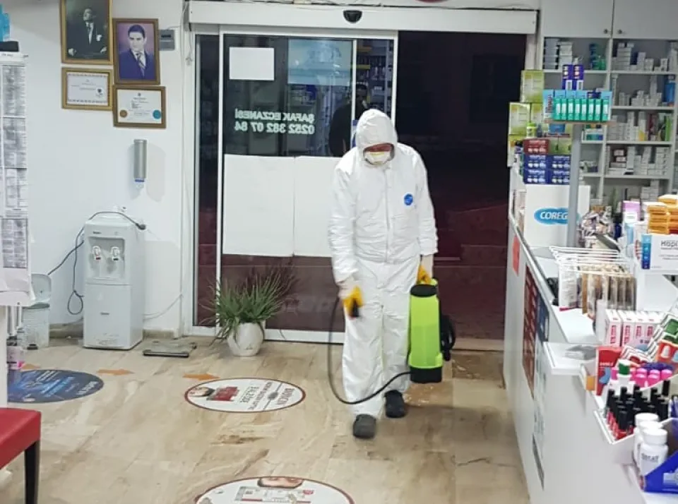 Belediye Başkanı Ahmet Aras'ın talimatıyla başlatılan uygulama kapsamında, nöbetçi eczaneler akşam saatlerinde Çevre Koruma ve Kontrol Müdürlüğü ekipleri tarafından solüsyonlu sularla ilaçlanıyor. Bazı eczacılar ise içerideki dezenfeksiyon işlemlerini yaptıklarını belirterek, ekiplerin sadece eczane girişini ve dışını ilaçlamasını talep ediyor.