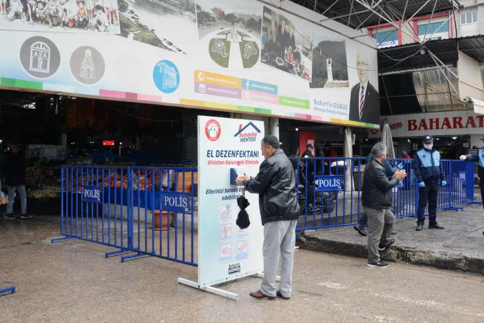 Menteşe Belediye Başkanı Bahattin Gümüş, gazetecilere yaptığı açıklamada, yayınlanan ek genelge doğrultusunda pazar yerlerine giriş ve çıkışları belli noktalardan kontrollü şekilde yaptıklarını söyledi.