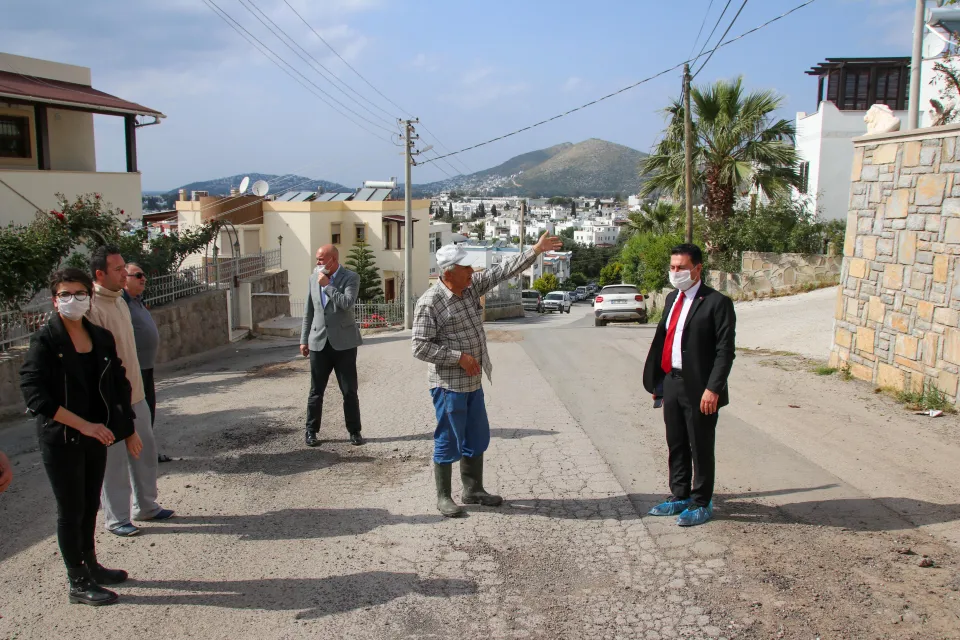 Bodrum Belediye Başkanı Ahmet Aras, Turgutreis Mahallesi Mehmet Akif Ersoy Caddesi üzerinde gerçekleştirdiği incelemelerde vatandaşların şikayet ve taleplerini dinleyerek notlar aldı.