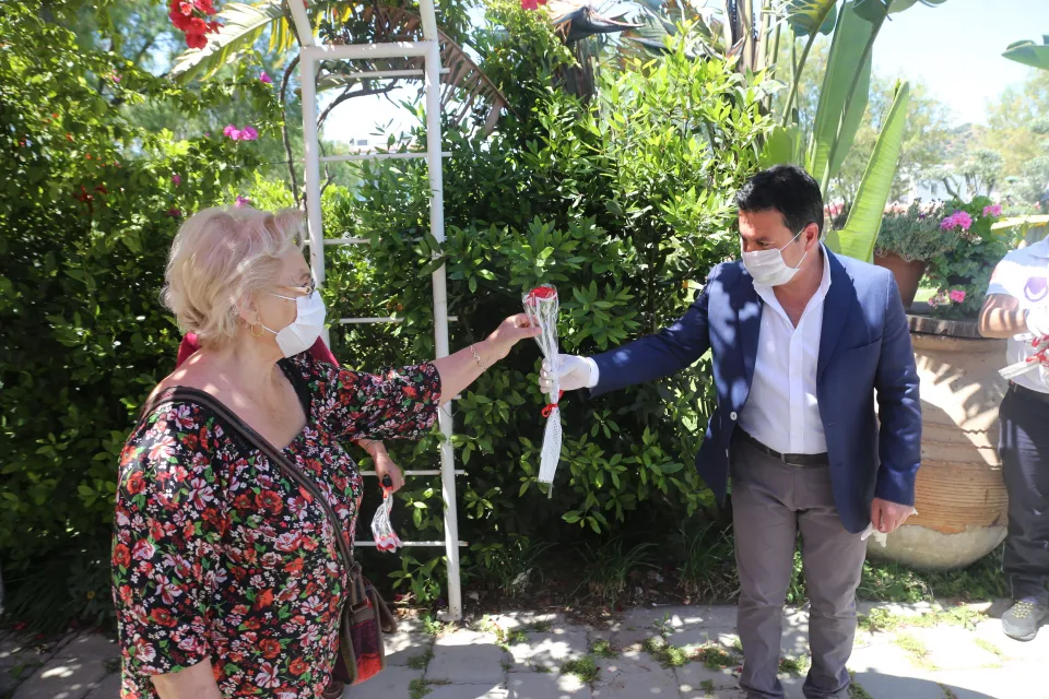10 Mayıs Anneler günü dolayısıyla Ortakent ve Turgutreis Mahallesinde annelere kırmızı karanfil vererek günlerini kutlayan Başkan Aras belediyenin kadın temizlik çalışanlarını unutmadı.