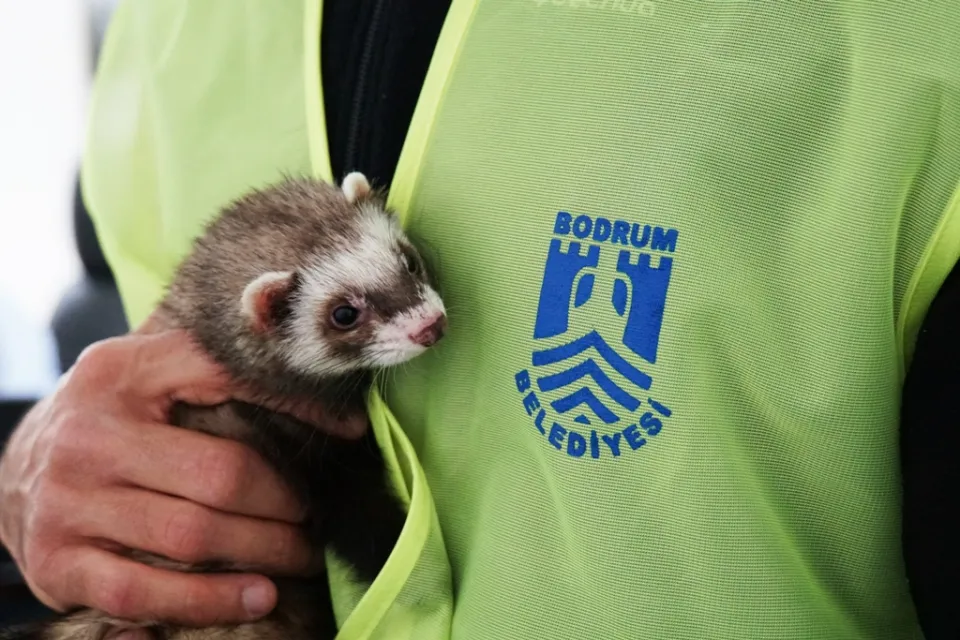 Bodrum'da vatandaşlarca fark edilen feret, Bodrum Belediyesi Torba Geçici Hayvan Bakımevi'nde ilgi odağı oldu.