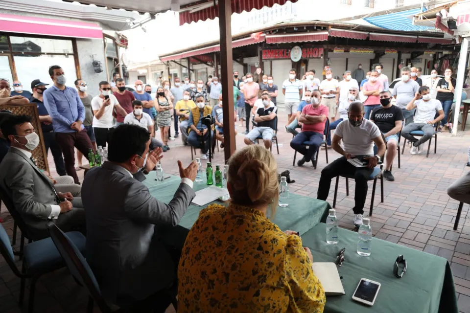 Daha sonra esnafın sorunlarını ve önerilerini dinleyen Başkan Aras, toplantının ardından bölgedeki çalışmalarla ilgili incelemelerde bulundu.