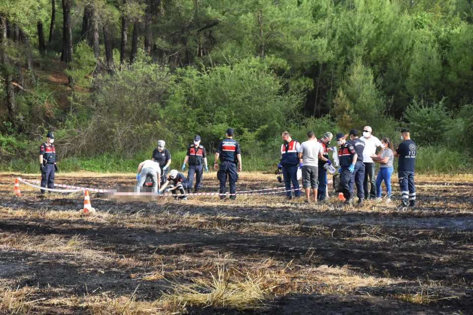 Yoğun duman altındaki bölgede soğutma çalışması yapan ekipler, tarlanın ortasında yanında kürek bulunan yanmış bir erkek cesedi buldu. Durumun bildirilmesi üzerine gelen jandarma ekiplerinin yaptığı incelemede, cesedin emekli savcı Ayhan Sökmen'e (81) ait olduğu belirlendi.