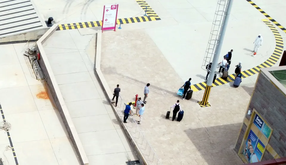 Yunanistan'ın başkenti Atina açıklarında Kovid-19 önlemleri kapsamında yaklaşık 45 gündür bekletilen 295 metre uzunluğundaki dev yolcu gemisi, Bodrum ilçesine geldi. Karada adası ile liman arasına demirleyen gemideki Türk personelden 27'si polis ve sağlık ekiplerinin gözetiminde botla yapılan 5 seferle karaya çıkarıldı.