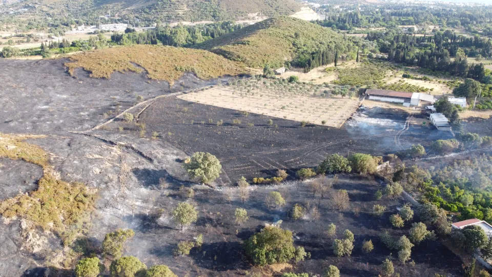 Bölgedeki bazı ev sahipleri de bahçe hortumları ve kovalarla kuru otları ıslatarak söndürme çalışmalarına destek verdi. Yangında, 15 hektarlık makilik ve tarımsal alanın zarar gördüğü öğrenildi.
