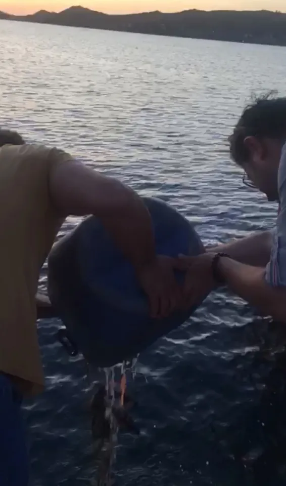 Yakalanan deniz patlıcanlar denize bırakıldı.