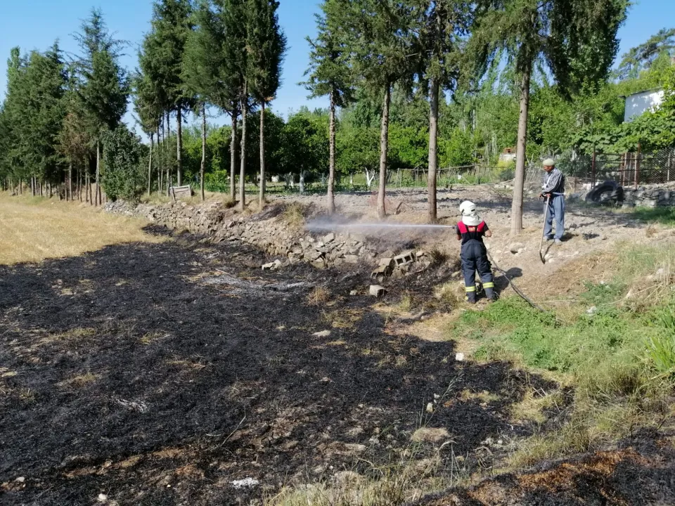 Dirmil Mahallesi Bağarası mevkisindeki tarım arazisinde temizlik amacıyla yakılan ateş, rüzgarın etkisiyle büyüyerek zeytinliğe sıçradı.