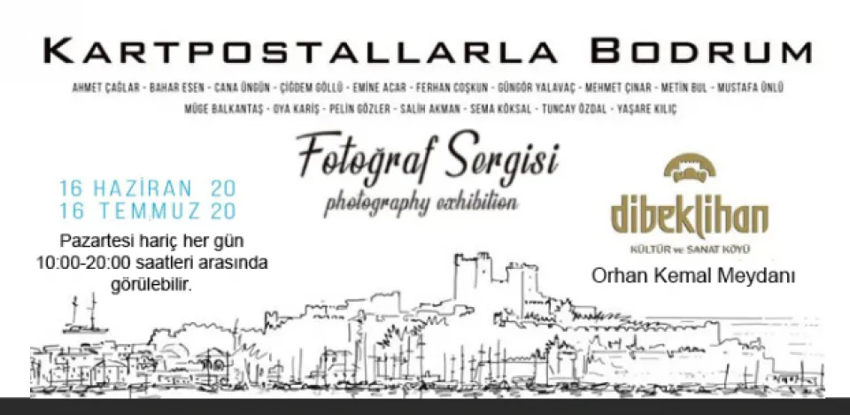 Covid-19 önlemleri doğrultusunda kapalı galerilerdeki sergilere ve etkinliklerine ara veren Dibeklihan Kültür ve Sanat Köyü açık alan sergilerine 16 Haziran Salı günü "Kartpostallarla Bodrum Fotoğraf Sergisi” ile başlıyor. 10 kişi altı gruplar halinde gezilebilecek sergi için açılış kokteyli yapılmayacak. Sergi Orhan Kemal Meydanında 16 Temmuz kadar görülebilir..