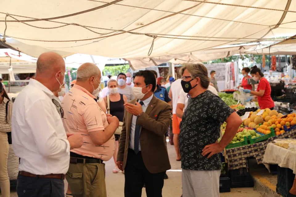 Bodrum Belediye Başkanı Ahmet Aras, Turgutreis'in farklı mevkilerinde incelemelerde bulunarak, Akçaalan pazaryerini ziyaret etti.