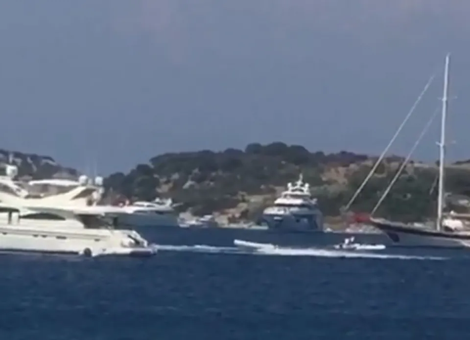 Bodrum ilçesinde kaptanı denize düşen sürat botunun etrafında dönmesi cep telefonu kamerasıyla görüntülendi.