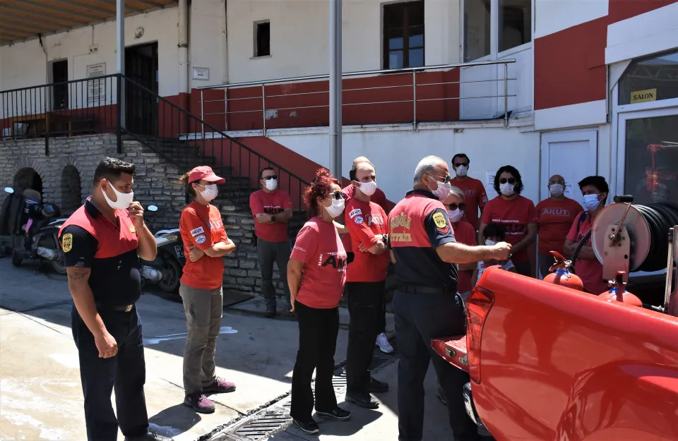 Bodrum ilçesinde, Arama Kurtarma Derneği (AKUT) gönüllülerine, yangına müdahale eğitimi verildi.